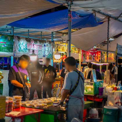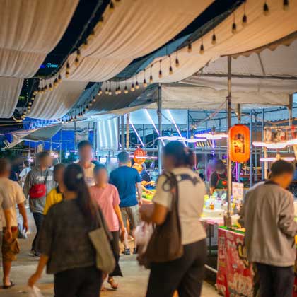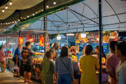 ตลาดนัด : เปิด วันจันทร์- พฤหัสบดี เวลา 16:00 น. – 21:00 น.