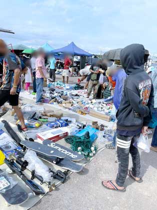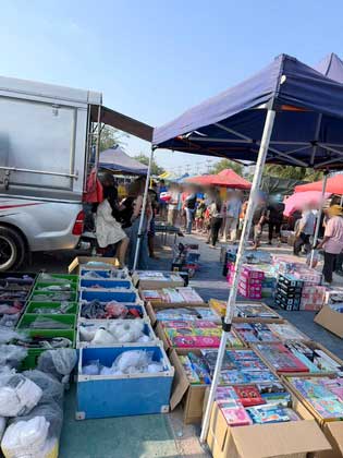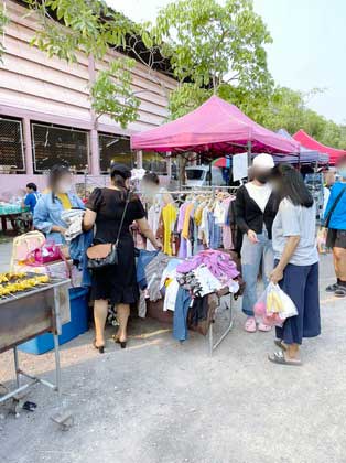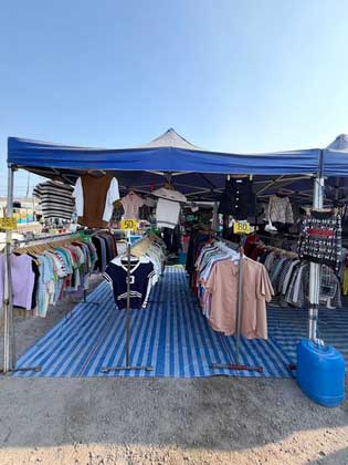 - เสื้อผ้ามือสอง: ขนมาเป็นกองให้เลือกคัดเลือกขุดในราคาหลักสิบ