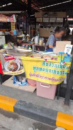 - จุดเด่น: ไม่ขวางทางเท้า ไม่ต้องกลัวเทศกิจไล่ เพราะขายในพื้นที่ตลาดที่ถูกต้อง
