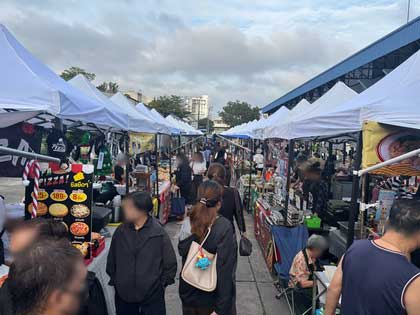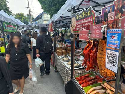 - จัดพร็อพให้เด่นภายใต้เต็นท์ขาว: เนื่องจากกฎระเบียบบังคับให้ใช้เต็นท์สีขาวเหมือนกันทุกร้าน เคล็ดลับคือการใช้ผ้าปูโต๊ะหรือป้ายร้านที่มีสีสันสดใสตัดกับสีขาว เพื่อดึงสายตาลูกค้าที่เดินผ่านไปมาให้หยุดที่หน้าร้านเราทันทีครับ